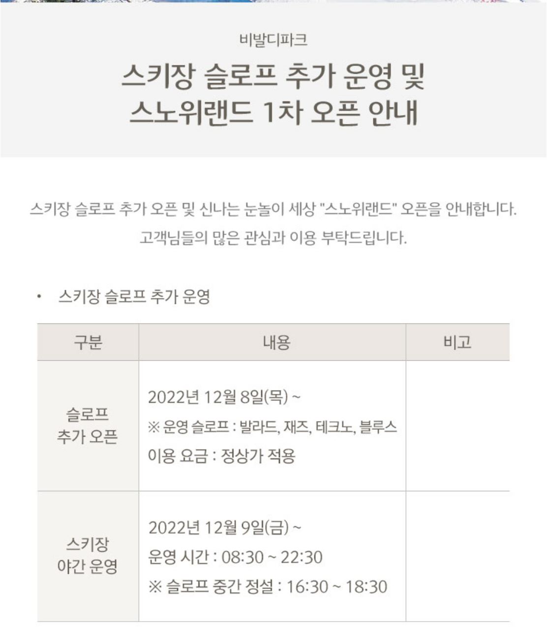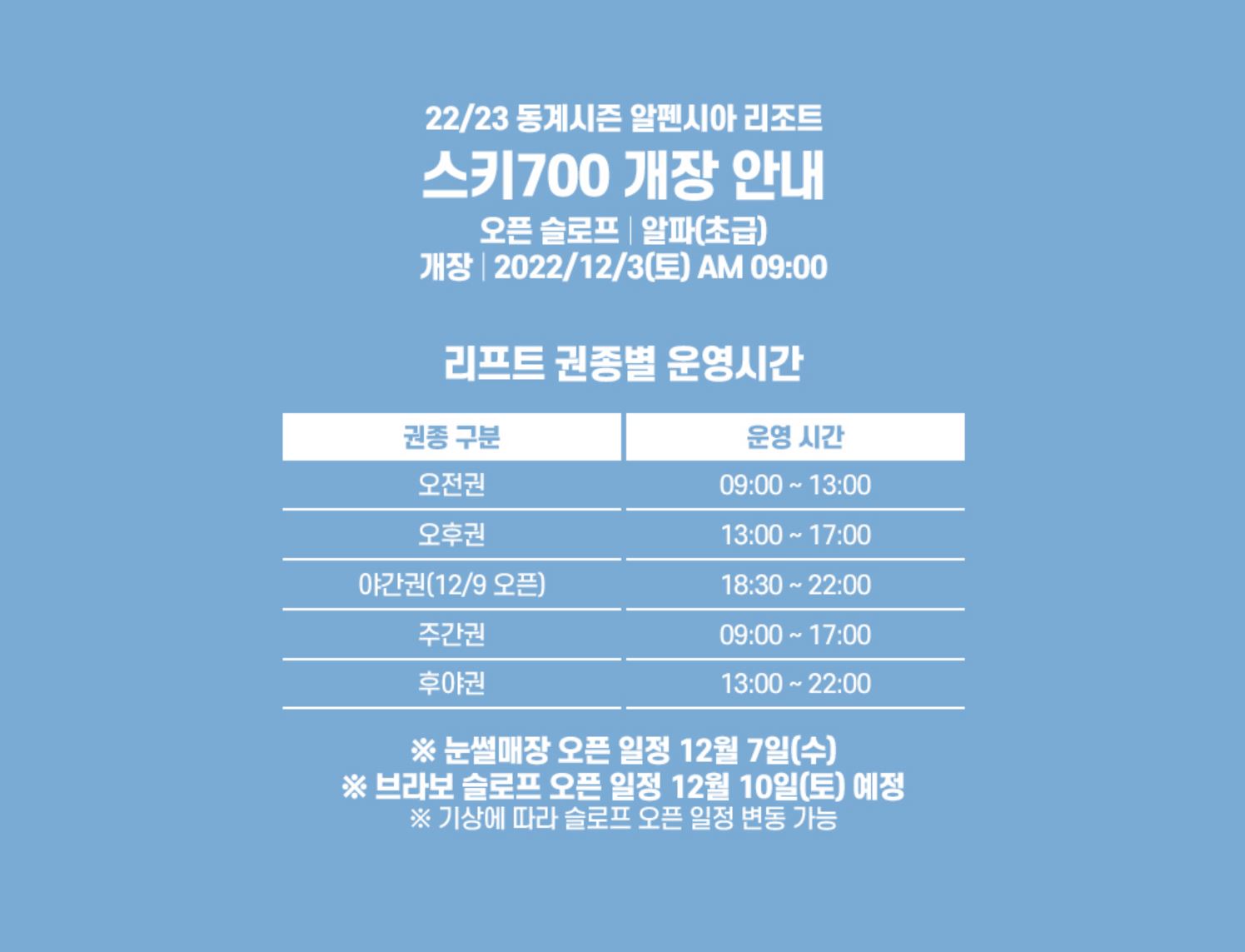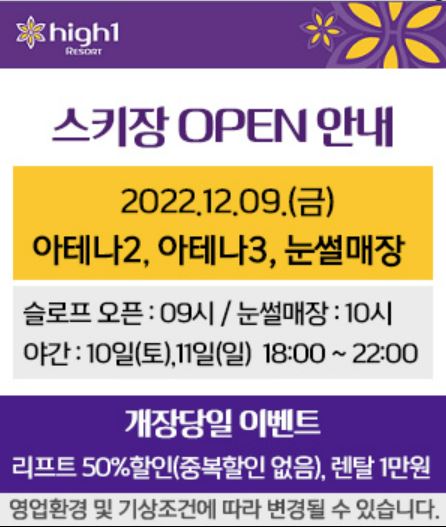 12월 22일에 오픈하고, 전 슬로프 오픈한다.